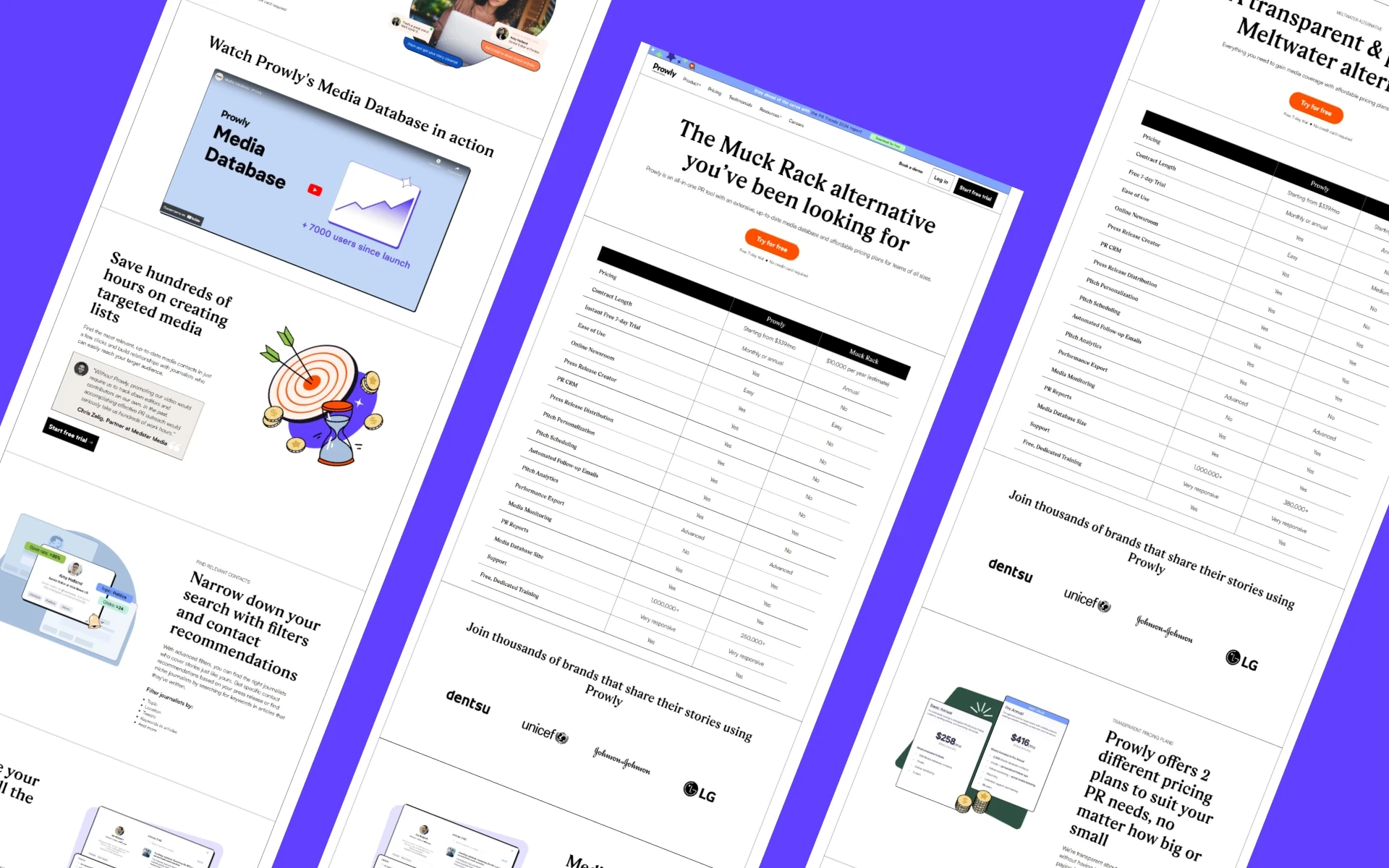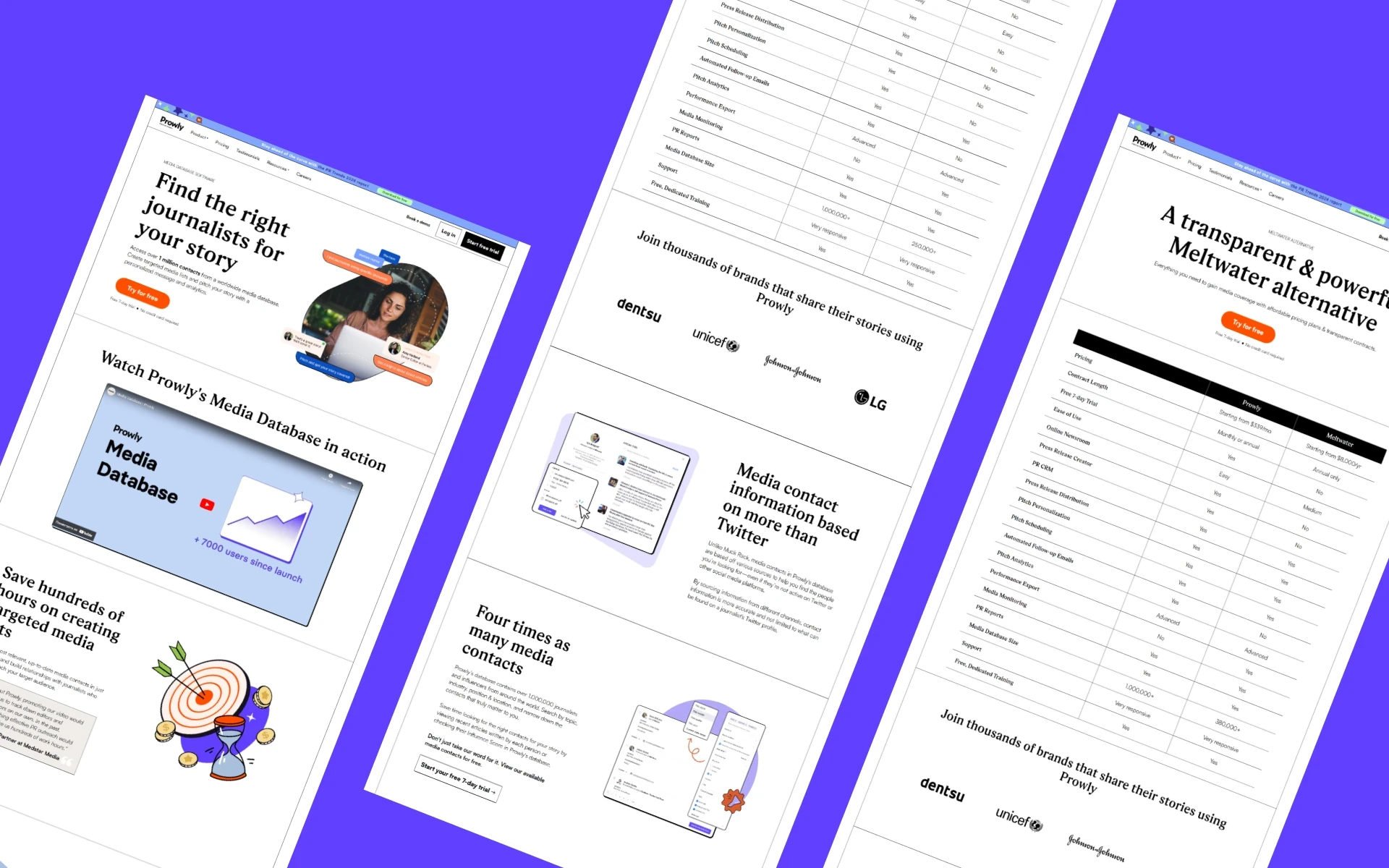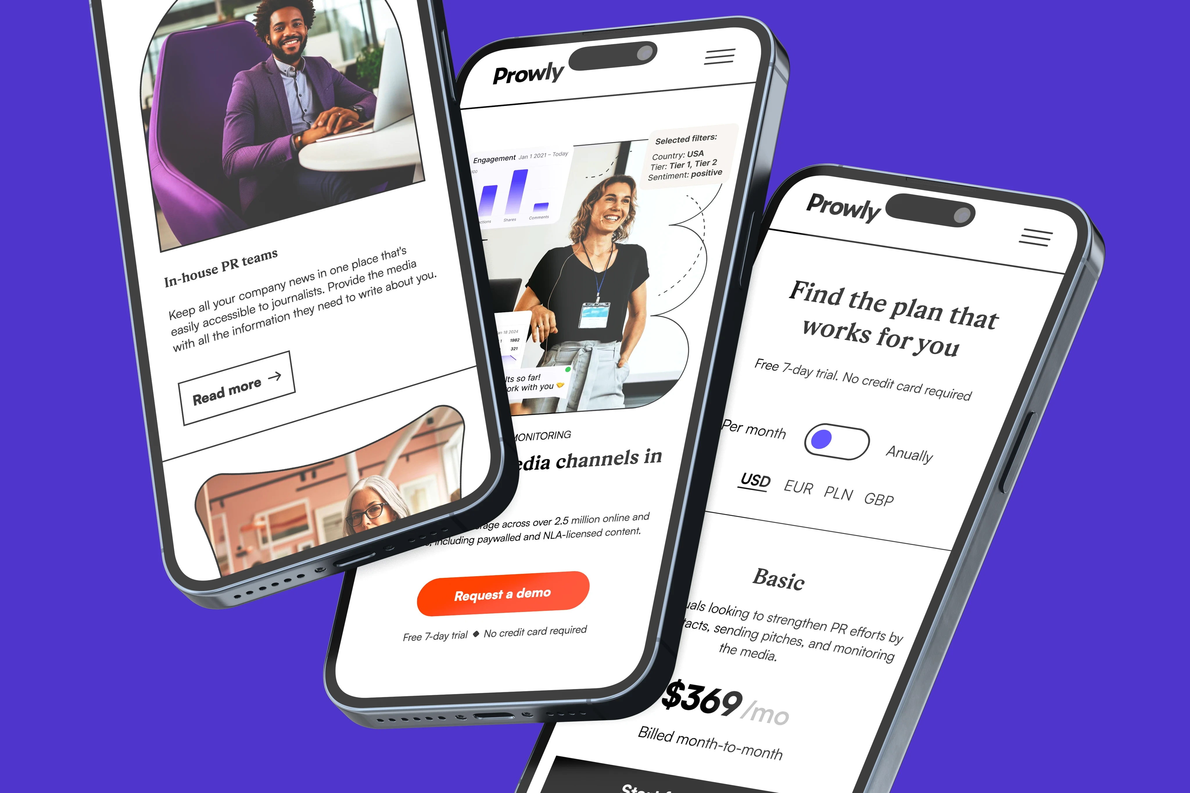 Prowly is a public relations software and an all-in-one workflow automation solution for PR professionals. The company’s website plays a key role in attracting leads and engaging users. This project focused on improving the user experience, visual design, and align it with the refreshed brand identity.